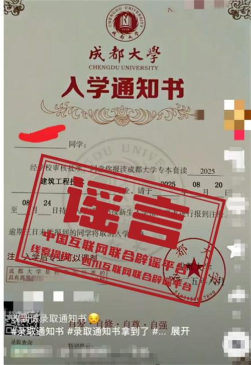 教育部多次提醒,部分機(jī)構(gòu)和個(gè)人打著普通高等學(xué)歷教育幌子,實(shí)際卻為自考助學(xué)、網(wǎng)絡(luò)教育等其他教育形式,或進(jìn)行虛假宣傳。如未通過(guò)高考招生錄取獲得正式通知書,無(wú)法注冊(cè)普通高校正式學(xué)籍,也無(wú)法取得普通高等學(xué)校學(xué)歷證書。考生及家長(zhǎng)應(yīng)通過(guò)正規(guī)渠道核驗(yàn)錄取信息,嚴(yán)格保護(hù)個(gè)人信息,防止被不法分子利用。(來(lái)源:四川互聯(lián)網(wǎng)舉報(bào)辟謠平臺(tái)、成都網(wǎng)絡(luò)辟謠)