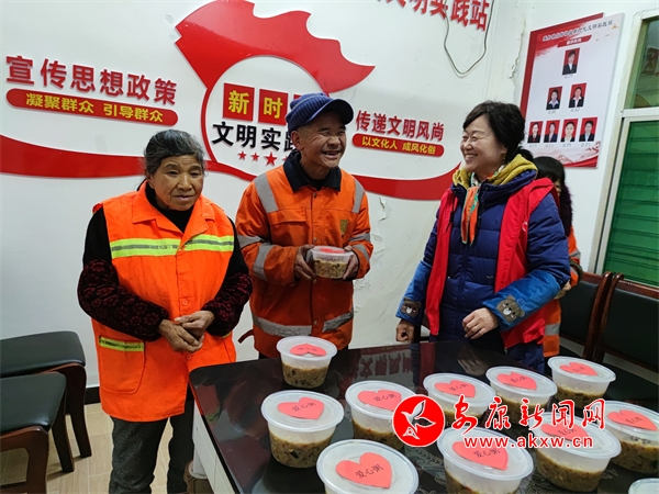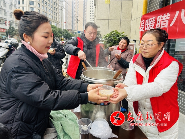 ▲ 漢陰縣城關(guān)鎮(zhèn)李家臺社區(qū)食堂開展“暖暖臘八節(jié) 濃濃社區(qū)情”免費送臘八粥活動。王建霞 攝