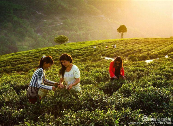 日上三竿,帶著新采摘的嫩葉走進(jìn)茶農(nóng)新居,好客主人必是要捧出好茶招待,掬一捧屋后的山泉水,燒沸晾至八九成熱,水壺高高提起,水注一線,向著客人鳳凰三點(diǎn)頭,茶在熱流中凡翻滾,被濃縮收藏的春意也在激蕩中被喚醒,輕緩的舒展著腰肢,一枚枚嫩芽恢復(fù)了清純,如同天鵝湖畔的仙子隨杯中的水流旋轉(zhuǎn)跳動(dòng),直到靜水曲終,那蘊(yùn)藏在葉脈芽尖的漫山春意亦緩緩釋放出來。押上一口一縷清香沁入肺腑,那是女兒十八春的味道,任你墻高門緊,早已飄出十里八鄉(xiāng)了,這樣的季節(jié)怎能不上茶山不踏春呢?