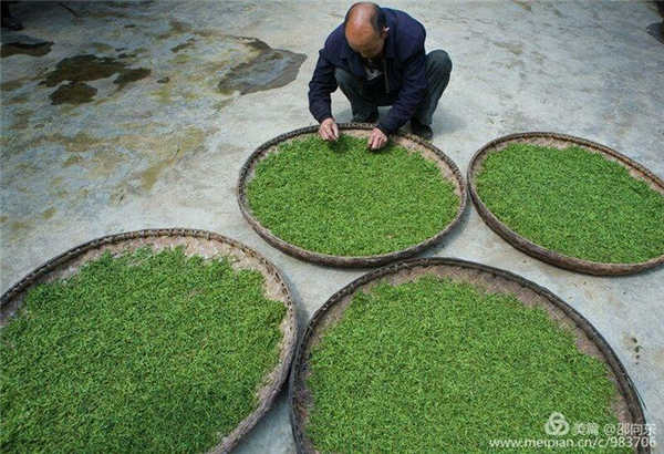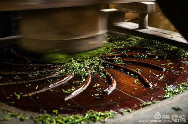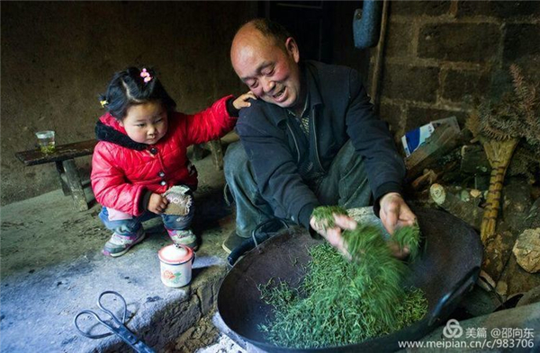 一群群花紅柳綠的采茶人,依著茶山一字排開,嬉笑逗樂間兩手如飛梭,一片片毛尖芽頭便攥入手中,落入竹簍,其穩(wěn)、準(zhǔn)、快、靈如同魔術(shù)。初產(chǎn)之春獨(dú)早銀針每斤芽頭約四萬枚,左右誤差不出百余,據(jù)說這明前銀針唯有這十七、八的山妹子親手采摘,制出的茶才別有一番甜香之氣,這也是傳統(tǒng)紫陽貢茶奧妙之所在。