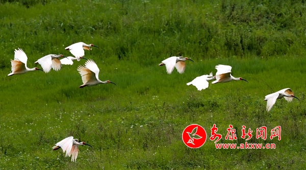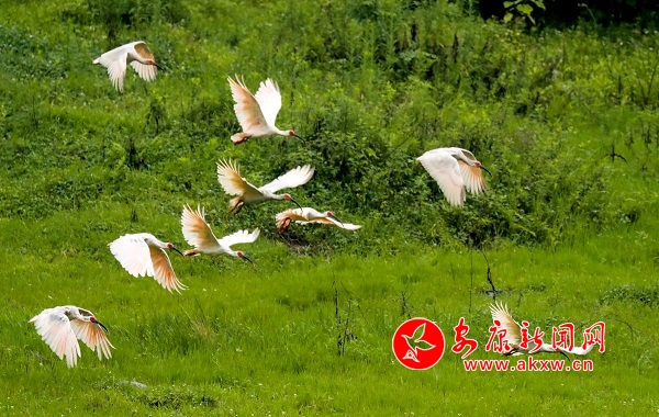 7月18日上午,22只野生朱鹮在漢陰月河草灘出現(xiàn)。據(jù)當(dāng)?shù)厝私榻B,近期就已發(fā)現(xiàn)十幾只朱鹮在此棲息,當(dāng)日朱鹮數(shù)量有所增加。據(jù)悉,我市自然生態(tài)環(huán)境不斷得到保護(hù)后,非常適宜朱鹮的生存,近幾年來(lái)已陸續(xù)發(fā)現(xiàn)朱鹮來(lái)到我市漢江水域和部分縣域小河覓食。 皮勇維 攝vvc安康新聞網(wǎng)