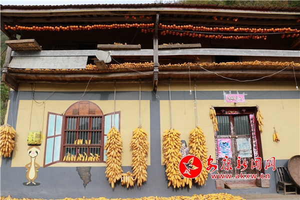 10月30日,漢濱區(qū)茨溝鎮(zhèn)西溝村,家家戶戶都忙著制作柿餅,房前掛滿的玉米、柿子與改造好的民居形成了一道美麗的鄉(xiāng)村秋景。吳亞君/攝 s46安康新聞網(wǎng)