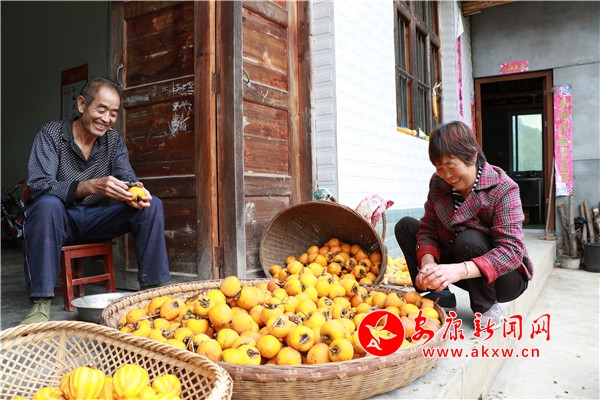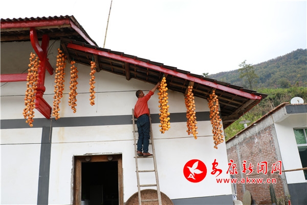 鄉(xiāng)村秋景,家家戶戶掛柿子