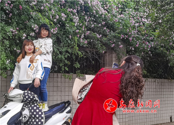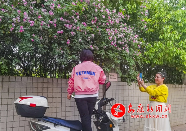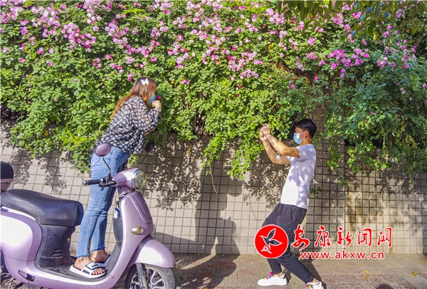 近日,安康東堤外的漢寧宮院墻上的薔薇花盛開,成了安康的網(wǎng)紅打卡地,每天吸引了數(shù)百人到此賞花拍照。(圖文/陳德模)