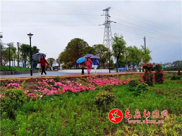 5月14日,漢陰縣迎來(lái)了2022年立夏后的首場(chǎng)降雨。在漢陰縣花月灣迎賓公園,鮮花盛開(kāi),鋪滿路邊。市民們行走在雨中,呼吸著春雨的氣息,聞著鮮花四溢的香味,鍛煉著身體,心曠神怡。(圖文/林愛(ài)銘)g8h安康新聞網(wǎng)