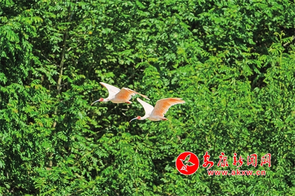 日前,在漢陰縣城關(guān)鎮(zhèn)的一處山水間,最多時有近20多只朱鹮棲息在2棵樹枝上,而且絕大多數(shù)為今年的新生代,種群在不斷擴大,說明漢陰的生態(tài)已經(jīng)滿足朱鹮的繁衍生息條件。同時需要提供更多的保護濕地、河流為它們提供覓食、棲息之處。相信在不久的將來,漢陰的山是金疙瘩,水是銀浪花,鳥是紅寶石。 wQH安康新聞網(wǎng)