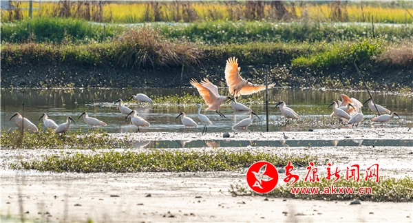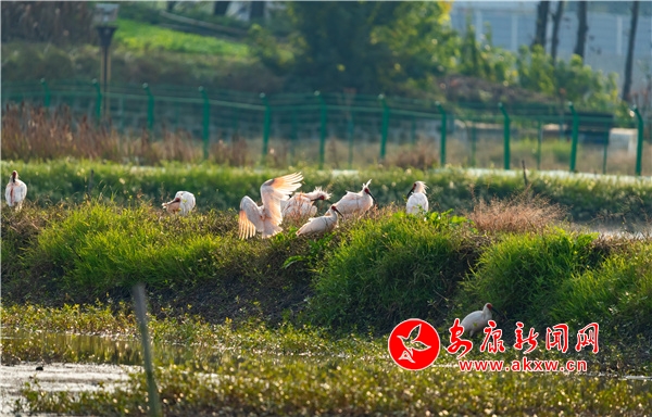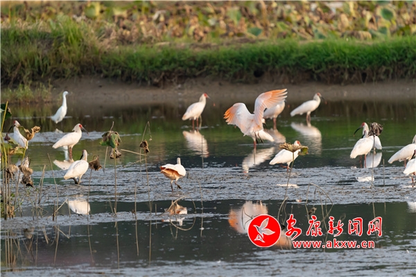 近日,有攝影愛(ài)好者在漢陰縣雙乳鎮(zhèn)千畝荷塘景區(qū)拍到50余只朱鹮的曼妙身影。他們時(shí)而悠閑覓食,時(shí)而閑庭散步,時(shí)而展翅高飛,潔白的羽毛,艷紅的頭冠和黑色的長(zhǎng)嘴,成為秋日里一道靈動(dòng)的風(fēng)景。