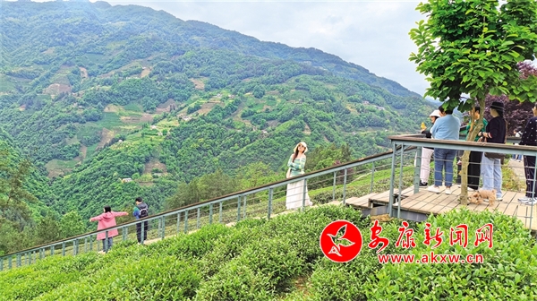 ① 游客在紫陽縣富硒茶觀光園里游玩拍照。儲(chǔ)茂銀 攝