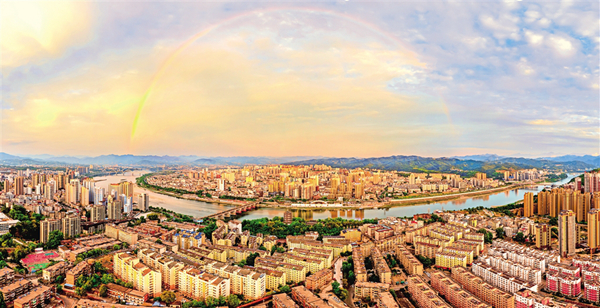 6月19日,我市中心城區(qū)迎來陣雨。雨后一彎彩虹為夏日里的城市增添一份靈動。eNH安康新聞網(wǎng)