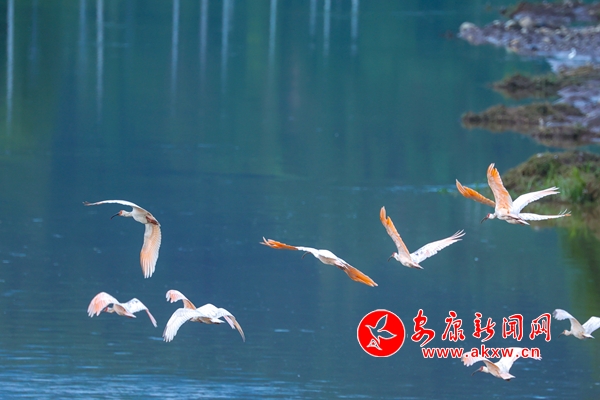 初秋的漢陰月河河畔到處都是一幅豐收的美景,微風(fēng)拂過(guò)稻田,稻穗悠揚(yáng),空氣中彌漫著泥土的清香,前來(lái)覓食的朱鹮,掠過(guò)人的頭頂,這樣的畫面隨處可見(jiàn)。月河是漢江一級(jí)支流,也是漢陰縣的母親河,因這里獨(dú)特的地理氣候和優(yōu)良的自然環(huán)境,使朱鹮有充足食物,為其繁衍生息創(chuàng)造了優(yōu)良條件,同時(shí)為了使巢區(qū)林木和濕地資源不受破壞,漢陰先后采取限制農(nóng)民使用農(nóng)藥、化肥,調(diào)整農(nóng)業(yè)產(chǎn)業(yè)結(jié)構(gòu),發(fā)展綠色無(wú)公害農(nóng)業(yè)種植等一系列措施,讓朱鹮安心落戶生活。(通訊員 王建霞 沈杰)