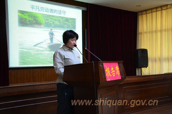 4月9日上午,石泉縣舉辦黨的群眾路線(xiàn)教育實(shí)踐活動(dòng)集體學(xué)習(xí)趙明翠先進(jìn)事跡報(bào)告會(huì),用身邊的典型教育引導(dǎo)廣大黨員干部轉(zhuǎn)變工作作風(fēng),強(qiáng)化服務(wù)意識(shí),踐行黨的群眾路……