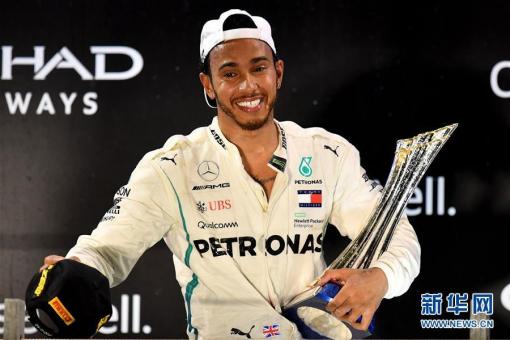 11月25日,漢密爾頓在領獎臺上慶祝奪冠。 當日,2018賽季世界一級方程式賽車錦標賽(F1)最后一站比賽在阿聯(lián)酋阿布扎比結束爭奪,梅賽德斯車隊英國車手漢密爾頓……