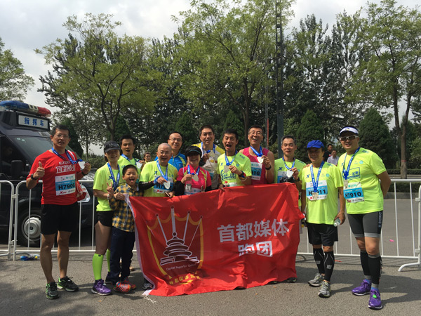 圖為作者在內(nèi)的首都媒體跑團參加太馬