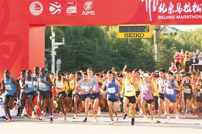 上周日7時30分,迎著金秋北京溫暖的陽光,3萬名跑步愛好者在北京馬拉松賽(下稱北馬)的起點線——天安門前高唱完國歌后出發(fā),跑向終點奧林匹克廣場。最終,來自摩洛哥的小伙博納思爾以2小時11分18秒的成績奪得男子組冠軍,埃塞俄比亞的貝耶內(nèi)以2小時27分44秒的成績摘得女子組冠軍。