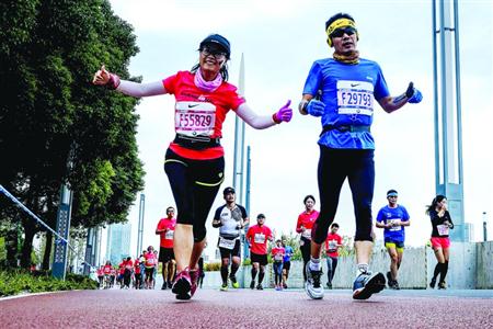 上馬選手在黃浦濱江段奔跑 /晨報記者 任國強