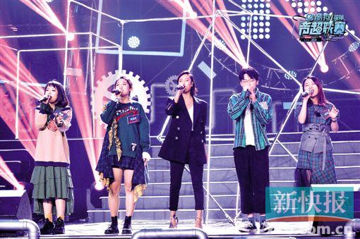 當(dāng)晚的比賽,就像一場(chǎng)混搭版的演唱會(huì)。一開(kāi)場(chǎng),星海音樂(lè)學(xué)院、浙江傳媒學(xué)院、四川傳媒學(xué)院、中國(guó)音樂(lè)學(xué)院、重慶大學(xué)五強(qiáng)戰(zhàn)隊(duì)就合體演唱主題曲《冒險(xiǎn)時(shí)代》拉開(kāi)決賽序幕,之后五強(qiáng)戰(zhàn)隊(duì)分別帶來(lái)了自己的表演,并向?qū)、人氣、媒體、制作人四大通道發(fā)起挑戰(zhàn)。