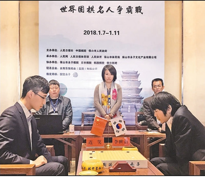 | 1月10日,連笑(前左)和李世石(前右)在比賽中。 |
