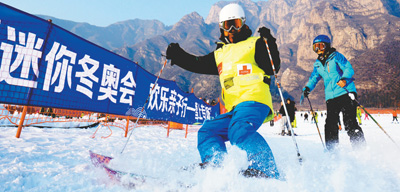 | 游客在延慶萬科石京龍滑雪場體驗冰雪運動激情。 |