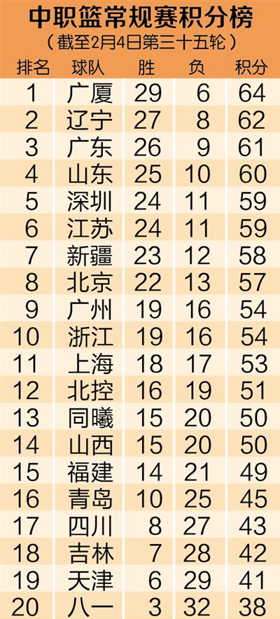 2017—2018賽季中國男籃職業(yè)聯(lián)賽(CBA)常規(guī)賽還剩3輪,暫居積分榜首位的浙江廣廈隊目前領(lǐng)先第二名遼寧隊兩個勝場,處在沖擊常規(guī)賽冠軍更有利的位置;而圍繞季后賽席位的爭奪更趨白熱化,3支球隊為最后兩個席位發(fā)起最后的沖刺。