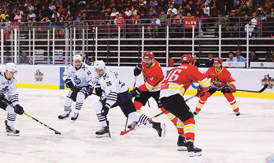 2016年9月5日,在北京五棵松樂視體育生態(tài)中心,昆侖鴻星冰球俱樂部萬科冰球龍隊主場對戰(zhàn)俄羅斯隊。當(dāng)晚,五棵松體育館涌進(jìn)了近萬名觀眾,現(xiàn)場沸騰,掌聲雷動。