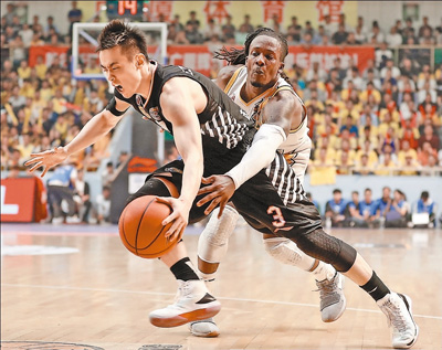 4月17日,遼寧隊球員趙繼偉(左)突破廣廈隊球員福特森的防守。dY8安康新聞網(wǎng)