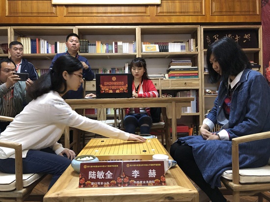 前三輪比賽過(guò)后,洛陽(yáng)隊(duì)和廈門(mén)隊(duì)的成績(jī)都不太理想,分別積以3分和5分排名倒數(shù)第二和倒數(shù)第三位。因此,本輪比賽對(duì)于雙方來(lái)講都是非常重要的爭(zhēng)分之戰(zhàn),主將對(duì)決李赫與陸敏全兩人下的十分謹(jǐn)慎,棋局進(jìn)程十分慢。李赫在開(kāi)局右下角獲利巨大,取得優(yōu)勢(shì)后出現(xiàn)了誤算,陸敏全憑借左下角一戰(zhàn)獲利,將局勢(shì)扳回不少,但李赫仍有優(yōu)勢(shì)。眼見(jiàn)局勢(shì)變得有些細(xì)微,雙方進(jìn)入收官階段,這時(shí)棋局卻突發(fā)意外,李赫由于按鐘時(shí)手滑失誤,在讀秒最后關(guān)頭超時(shí)。經(jīng)雙方協(xié)調(diào),陸敏全不同意繼續(xù)對(duì)弈,按規(guī)則李赫被判超時(shí)負(fù),洛陽(yáng)隊(duì)憾失3分。