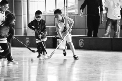 穿著普通運(yùn)動(dòng)鞋在旱地上也能打“冰球”?沒(méi)錯(cuò)。在北京市冰球運(yùn)動(dòng)協(xié)會(huì)的推動(dòng)下,世界頂級(jí)冰球聯(lián)盟NHL(北美職業(yè)冰球聯(lián)賽)日前在京啟動(dòng)“NHL旱地冰球項(xiàng)目”,京城4所小學(xué)的師生率先接受培訓(xùn),并參加了比賽,孩子們?cè)趫?chǎng)上打得不亦樂(lè)乎。