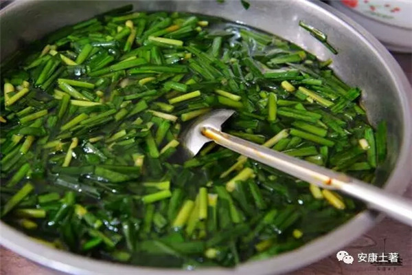煮熟的面魚兒,放在涼開(kāi)水里一冰,待熱氣散盡,舀起一碗,澆上漿水、蓋上漿水菜、韭菜,放兩勺大蒜辣子,加一勺油潑辣子,稍作攪拌后,一勺一口、一口一勺,夏日的暑氣瞬間化為烏有,一種安康獨(dú)具的酸爽讓人沉醉其中。