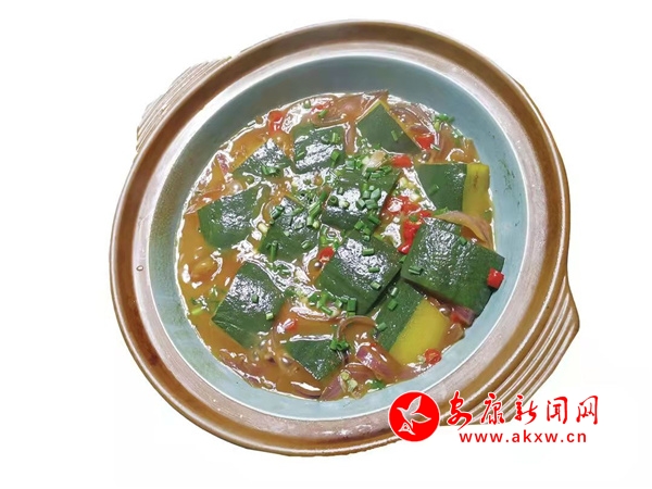 推薦理由:這道砂鍋焗南瓜雖是一道素菜,受歡迎程度卻絲毫不遜色于各種肉菜。將砂鍋底部鋪上一層姜蒜片和洋蔥絲,再把切成大塊的嫩南瓜鋪在上面,倒入生抽、老抽和白糖等各種調(diào)味料調(diào)制而成的料汁,再加入一點點清水,蓋上鍋蓋,用中小火焗上10~15分鐘,這道綿軟可口,香味撲鼻的砂鍋焗南瓜便做好了。由于沾染上了料汁的咸香,原本清甜的南瓜變得更加可口,酸甜咸鮮的交織,在口腔里迸發(fā),讓南瓜這道普通的食材變得別具風味,非常受食客的歡迎。