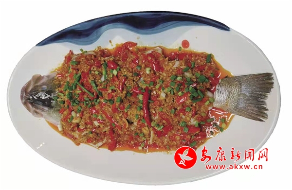 推薦理由:細膩鮮美的鱸魚應該沒有多少人會不愛吃,蒜泥辣椒的登場又為原本細膩柔嫩的魚肉增添了豐富的味覺層次。這道菜采用川菜的調(diào)味,為保證不破壞魚肉的外形和鮮嫩的口感,需要先將新鮮的鱸魚上鍋蒸熟,秘制的辣椒醬再加上大塊的鮮椒、蒜泥炒出香味后,均勻鋪在鱸魚上面,一道視覺上就讓人食指大動的佳肴就做好了,魚肉的鮮加上辣椒醬的香,讓這道以魚為主的菜也成了米飯殺手,越吃越過癮,越吃越想吃。