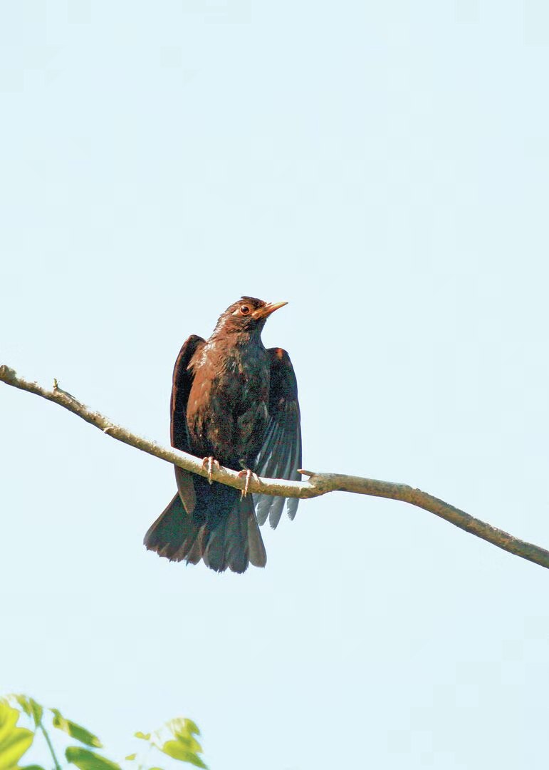 烏鶇要安靜地多,它們常三四只一起生活,不吵鬧,只有沒有人的時(shí)候,才從樹上下到地面上來覓食。黃嘴巴,渾身黑。只要它一看見你,便很快飛到樹枝間隱藏起來。