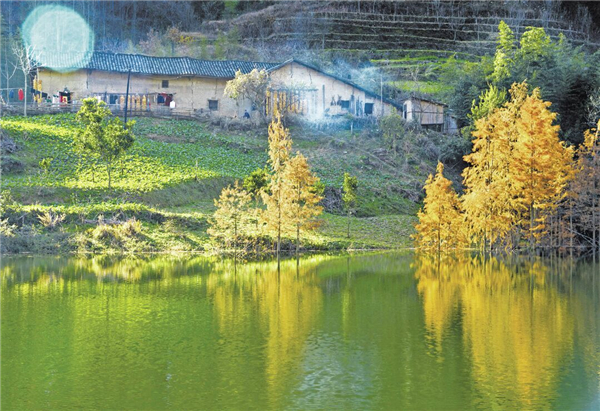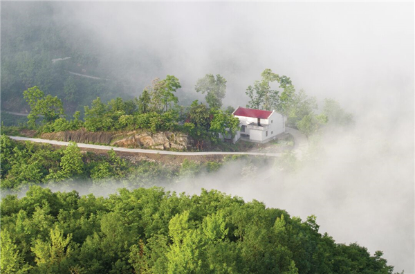 在水中,一條油潤(rùn)潤(rùn)的小路,融匯了大地的物語,春雨的澆注,還有輕輕觸碰就會(huì)變幻的神秘。道路的兩邊,是造型夸張要滴出翠來的植物,阻擋了行人的腳步,牽絆了路人的衣服,會(huì)給那些衣服沾染上艷麗的花粉,在深夜里都會(huì)散發(fā)出一股醉人的清氣,仿佛有什么該想而未想,心里蘊(yùn)滿了不能為人道皎潔的白月光。沿著那條路,就是在水中宛若樓臺(tái)亭閣一般的房屋,黑瓦房、白墻壁,杏花、桃花、茉莉花爭(zhēng)相簇?fù),房子便如置身其中的嬰兒了。還有小奶狗在屋前悠閑地打盹,太陽直射下來,貓也走來湊湊熱鬧,貓的眼睛碧藍(lán)澄澈,仿佛天使之瞳,總是帶著先知或者驚異審視的表情……而與此相對(duì)的,就是炊煙了,唯有炊煙將我們拉回世俗庸常之中,飯菜的香氣,去年果木熏的臘肉,農(nóng)家自己釀的一碗包谷燒,啊,真想喝點(diǎn)小酒,酒的美妙不在于入口的辛辣,而在于微醺之時(shí),那種難以控制的快樂!古來圣賢皆寂寞,唯有飲者留其名,明天的事,明天再說吧!