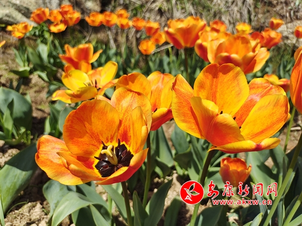 從遠處望去,郁金香整整齊齊地排列著,陣陣微風吹過,搖曳生姿。湊近看,郁金香花一朵挨著一朵,花瓣重疊,鮮艷得像要滴出水來。時不時還有幾只蝴蝶蜜蜂縈繞在花間,享受著春天帶來的絲絲甜蜜。在暖陽的照耀下,盛開的花朵隨春風搖曳,不同顏色、不同品種的郁金香呈現(xiàn)出了極佳的視覺效果,花叢中,游客三五結伴,賞花、拍照,享受繁花繞膝之美。