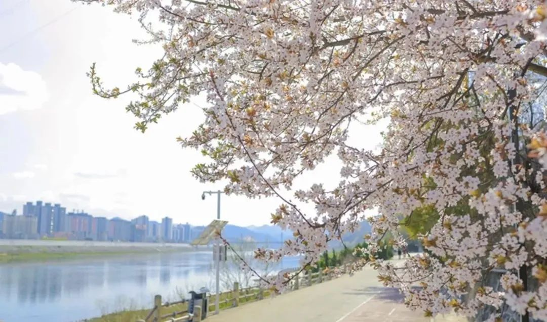 □ 陳善快 黃智發(fā) 賀珍珍近日,在漢陰縣龍崗公園,成片櫻花競相開放,形成一片紅粉為主、白色點綴的爛漫花海,蔚為壯觀。遠(yuǎn)遠(yuǎn)望去,一團(tuán)團(tuán)、一簇簇櫻花肆意地舒……