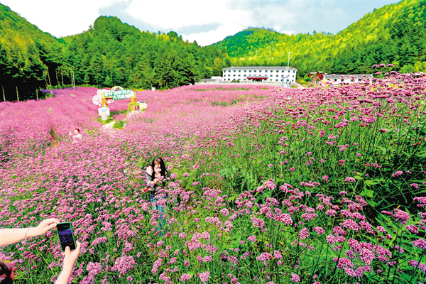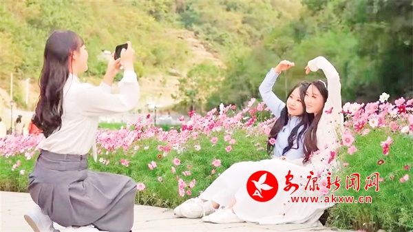 相映成趣游人如織金秋時(shí)節(jié),在白河縣構(gòu)朳鎮(zhèn)廟山寨花海產(chǎn)業(yè)園,盛開的格;ㄔ陲L(fēng)中搖曳。游客漫步在路上,心緒隨著搖曳的格桑花一同起伏,沉浸在秋日的寧靜與美好……