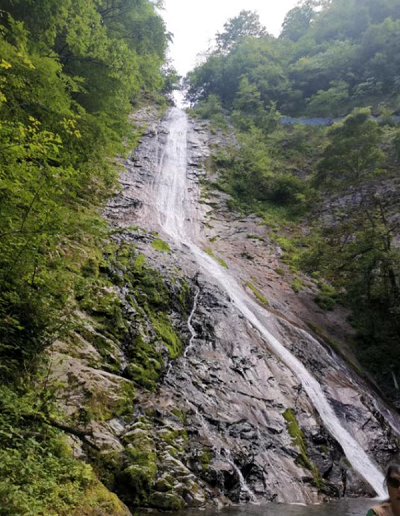 *飛渡峽內(nèi)有“六瀑五潭”各顯奇異,其中飛流瀑從天而下,飄逸瀟灑,游人贊口不絕。YME安康新聞網(wǎng)