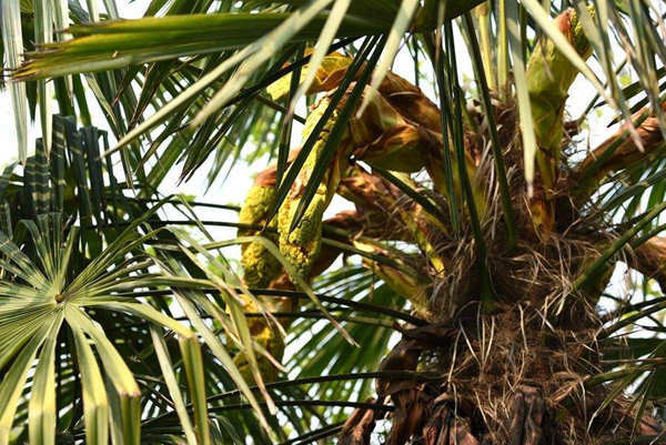 到了80年代初,當(dāng)?shù)貢r(shí)興起棕床,睡起來(lái)柔軟又有彈性,舒適又隔潮氣,家道殷實(shí)人家相繼都拆掉了稻谷草鋪就的架子床換成美觀新潮的棕床,后來(lái)我才知道,做一張床,除了木料和繩子,還得十幾塊工匠錢(qián),記得父親在陡坡上搬樹(shù)摔了一跤腰部受損,天氣一變就不停地呻吟,姐姐便使喚我們割遍自留山的棕,勉強(qiáng)織了一張床,是夜,父親睡得很安穩(wěn)。棕樹(shù)開(kāi)的花也很有特點(diǎn),花形呈佛手狀,花籽如粟米子樣金黃亮色,味道有點(diǎn)淡淡的苦,婆在世時(shí)常說(shuō)棕樹(shù)花燉豬心,娃娃吃了補(bǔ)心肺,長(zhǎng)記性,我上學(xué)時(shí)再生僻的詩(shī)文,看過(guò)一遍就爛熟于心,或許與吃過(guò)此湯不無(wú)關(guān)系,我在想,棕花入藥對(duì)治愈新冠肺炎應(yīng)該療效不錯(cuò),它也是一副神奇的中藥方劑。