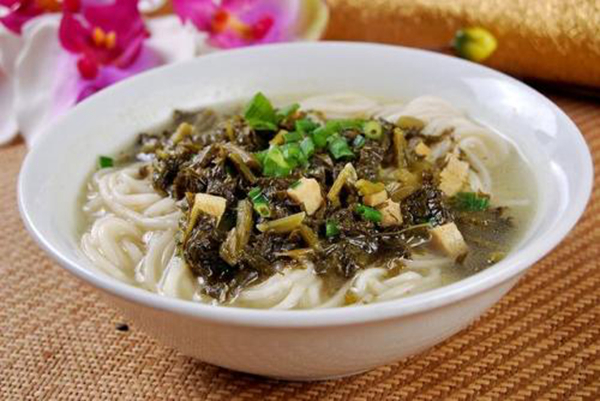 我的家鄉(xiāng)在山水環(huán)繞、滿眼皆綠的秦巴山區(qū)小城——中華太極城——旬陽縣。好山好水孕育出了眾多的美味食物,其中最具代表的要數(shù)“酸菜面”,也叫“漿水面”,它當之無愧的坐上了頭把交椅。好吃的酸菜面,自然要有泡的夠酸夠脆的酸菜和筋道的兩摻面,兩摻面是由豌豆面和小麥面和制而成。泡了兩三日的酸菜與手工搟好的兩摻面搭配在一起,一碗熱氣騰騰的酸菜面就盛到你的面前,若是再加上自家做的大蒜辣子,真是讓人胃口大開、大口朵頤、精神倍爽。特別是在夏天,或是在酒醉后的第一餐,嚼起清脆的酸菜、筋道的兩摻面、清香的大蒜辣子,頓時讓人滿口生香、酣暢淋漓、回味無窮,就會忍不住要多吃幾口。多種味道混合起來產生奇異的味覺沖擊,酸的爽快,辣的夠味。最后,再喝上幾口熱氣騰騰的面湯,直吃得要撐破肚皮才罷休。