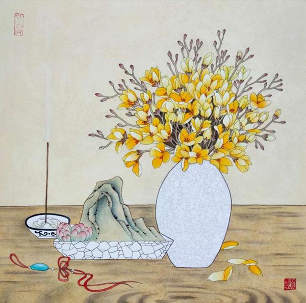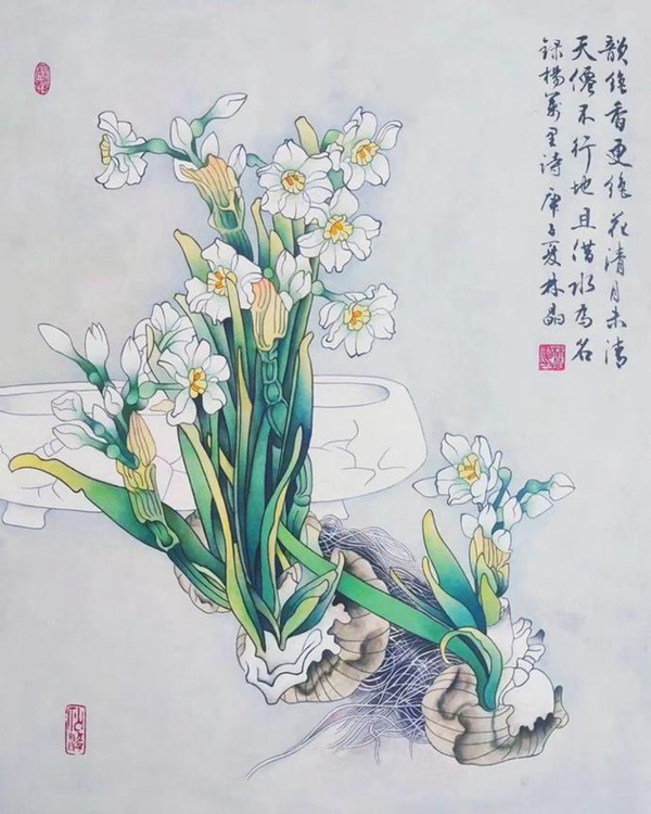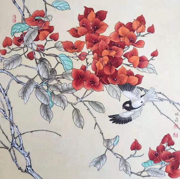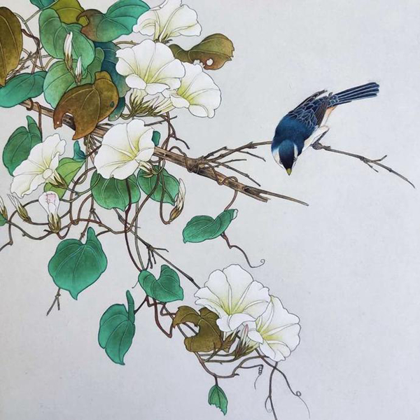 簡(jiǎn)而言之,林晶女畫(huà)家的工筆花鳥(niǎo)畫(huà),無(wú)論在構(gòu)圖上、線條上、設(shè)色上都彰顯出自己的“功夫”。她的每一幅畫(huà),都那樣艷而不俗、淡而有味,讓人有百看不厭的舒暢感。