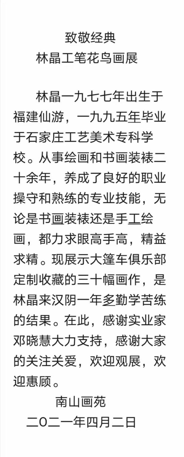 看現(xiàn)在林晶的繪畫(huà),工筆花鳥(niǎo)畫(huà)可以說(shuō)達(dá)到了惟肖惟妙,而且還有自己獨(dú)具的氣質(zhì)內(nèi)涵。她的工筆花鳥(niǎo)畫(huà),已經(jīng)是掌握了精湛的傳統(tǒng)技法,諸如布局、章法、線描,以及對(duì)留白的把控等,都是很到位的。而且她還將個(gè)人審美觀融了進(jìn)去,尤其是秦巴漢水的文人意趣體現(xiàn),更有自己的色彩感覺(jué),而其表現(xiàn)核心仍是傳統(tǒng)的藝術(shù)審美觀。