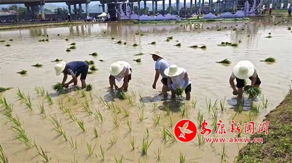 “立夏小滿插秧忙”。穿梭于稻田之間,書畫老師們盡情揮毫潑墨,把家鄉(xiāng)的情懷,融入了精美的扇面書畫之中。淳樸的孩子們把畫廊圍得水泄不通,看著他們紅撲撲的臉蛋、清澈靈氣的眼神,這就是稻鄉(xiāng)的孩子們。遠(yuǎn)處,還有一群群穿著漢服的游客小朋友,在陽(yáng)光下、稻田邊,顯得那么自信、靚麗。“誰(shuí)知盤中餐、粒粒皆辛苦”!還有家長(zhǎng)再給孩子們講著,要珍惜糧食、光盤行動(dòng)……如今,曾經(jīng)辛勤的勞作,逐漸通過(guò)線上線下聯(lián)動(dòng)、農(nóng)事體驗(yàn)互動(dòng)、文旅研學(xué)活動(dòng),早已成為了田園文化的商貿(mào)盛宴。“稻田拔河、稻田摸魚、稻田摔跤”等娛樂(lè)活動(dòng)與田園懷舊音樂(lè)會(huì)融為一體,吸引眾多的游客。