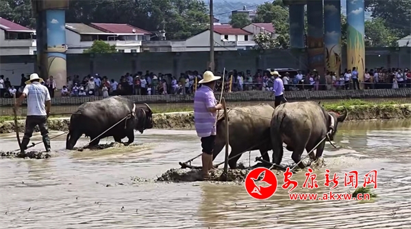 沿著316國(guó)道,我徑直把車開進(jìn)了袁莊村。四周蒼翠的青山之間,綠蔥蔥秧苗已經(jīng)緩過(guò)神了,微風(fēng)吹過(guò),似乎有稻香拂面。秧苗的葉子隨風(fēng)微顫,似乎在竊竊私語(yǔ);南山青黛、村落靜美,炊煙裊裊,彌散出固有的芬芳;還有那犄角上系著紅綢、脖子懸掛鈴鐺的水牛,也準(zhǔn)備著插秧節(jié)暨文旅商貿(mào)活動(dòng)的開幕式展演。身著粗布衣服的農(nóng)夫,腳踩涓涓流淌的溪水,擼一把青草塞進(jìn)水牛嘴里,它們悠閑地?fù)u晃著腦袋,慢嚼細(xì)咽起來(lái)。
