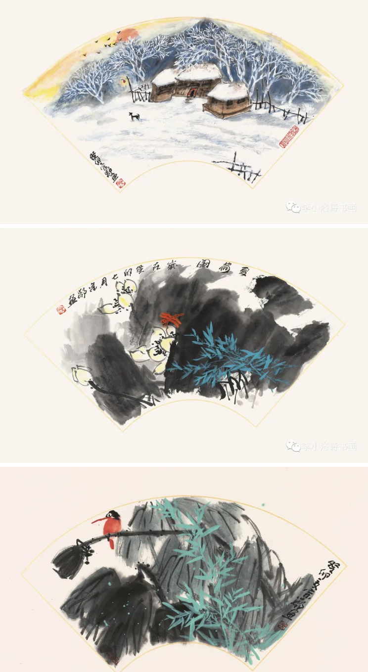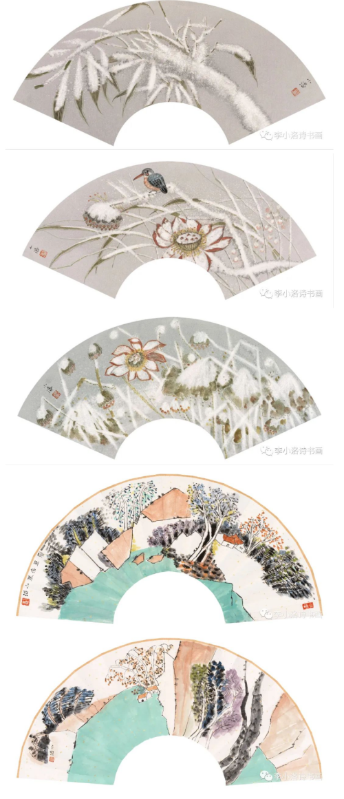 詩人寇宗鄂和林莽,均為《詩刊》編委,都曾擔(dān)任過《詩刊》的編輯部主任。寇宗鄂曾師從著名山水畫家徐北汀,詩人牛漢,詩畫兼擅。林莽作為白洋淀詩群和朦朧詩重要代表詩人,詩畫相融,桃李天下。張瑞田早年寫詩,后來多寫散文和書畫評論,是當(dāng)今活躍的評論家和書家。李木馬,李小洛,都曾參加過《詩刊》社的“青春詩會(huì)”,就讀魯迅文學(xué)院高研班,在詩歌和書畫創(chuàng)作上多年努力,取得了一定的成績……一人一格、一人一品,一扇一意、一扇一味,五位詩人作家的詩意筆墨,傳遞著各自對生活、藝術(shù)與世界的熱愛,認(rèn)知與發(fā)現(xiàn)。君子和而不同,透過一幀幀詩意盎然的扇面小品,在交相輝映的筆情墨趣中,可以看到他們相互啟迪,感染和照亮的友誼與藝術(shù)追求。