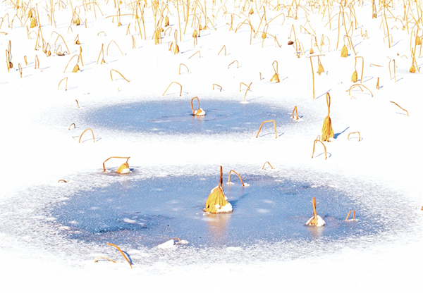 功夫在詩(shī)外,藝術(shù)皆相通。在西安美院期間,我學(xué)習(xí)過(guò)美術(shù)史論,對(duì)傳統(tǒng)美學(xué)和西方美學(xué)有了系統(tǒng)學(xué)習(xí)和認(rèn)知,尤其鐘情“以空寫實(shí)”的留白意境,“鳥宿池邊樹,僧敲月下門”空靈意境讓我神往。我把美術(shù)理論運(yùn)用到攝影實(shí)踐。在拍攝荷塘?xí)r,我常借助湖面鏡面反射構(gòu)建對(duì)稱構(gòu)圖,讓殘陽(yáng)余暉與湖面蓮藕剪影在虛實(shí)間互動(dòng);俯拍蓮蓬剪影時(shí),輪廓線條在晨昏光暈中的若隱若現(xiàn),恰似水墨畫的筆斷意連,在快節(jié)奏的現(xiàn)代社會(huì)中,我渴望通過(guò)鏡頭喚醒觀者對(duì)靜謐與永恒的感知。