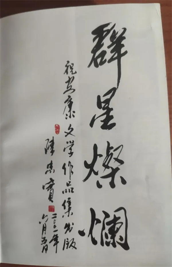 2001年5月下旬,我主編的《安康作家優(yōu)秀作品選》基本成型,編錄的有80多萬字,包括本市的中國作協(xié)、省作協(xié)、市作協(xié)會員180多人,原稿厚厚的一尺多高一墩了。出版前我想得有個壓軸的,便把一大包作品復印件不打招呼、就徑直寄給陳忠實,附信說請他寫個序。大約一個星期就收到陳忠實回信,說我做了件好事、有的地市還沒有這樣弄過;說他太忙,作品倒是大概看了、安康他知道的作家都在里面,還行。但是太忙、實在沒有時間再仔細看,也就不好寫序,務必諒解……末了,那寄給他的復印件都沒退,倒是給寄來了橫的、豎的,長短大小不一的、毛筆書寫在宣紙上的幾種形式的題詞“群星燦爛——祝安康文學作品集出版 陳忠實 二00一年六月五日”,每張題詞的宣紙還折疊得棱角分明、上下對稱。收到后,我的心里重騰騰的,想陳老漢下的功夫不小哩,只怕不比花費一兩個小時、走馬觀花地寫個洋洋灑灑的三兩千字的序省事!《安康作家優(yōu)秀作品選》當年出版后,有了反響、也有了結余。我專門委托在西安一雜志社打工的本土青年作者洪曉晴去西安找陳忠實,送上3本書、并送上500元潤筆費。不料、陳忠實見了書高興,但堅決不收這500元,并又給我來了一封信,解釋說文人都窮、出個書不容易哩!最后,信的結尾,陳忠實又幾乎是批評我,說我得有自己的創(chuàng)作哩!看來,陳忠實固然支持和欣賞編輯這種區(qū)域性系統(tǒng)性的作品集,但他更希望看到文學作者創(chuàng)作出具有個體生命體驗及其獨特感悟的作品,文學的靈魂和生命,畢竟是創(chuàng)造。