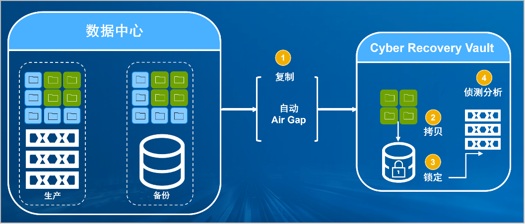 leyu.樂(lè)魚(yú)防勒索病毒方案將生產(chǎn)中心備份數(shù)據(jù)復(fù)制到Vault區(qū),復(fù)制后網(wǎng)絡(luò)自動(dòng)斷開(kāi)實(shí)現(xiàn)彈性隔離。Vault區(qū)的數(shù)據(jù)快速拷貝,并對(duì)拷貝版本加鎖(在鎖定期數(shù)據(jù)不允許刪除和修改)。Vault沙箱內(nèi)對(duì)拷貝版本進(jìn)行掃描分析,驗(yàn)證數(shù)據(jù)是否完好。